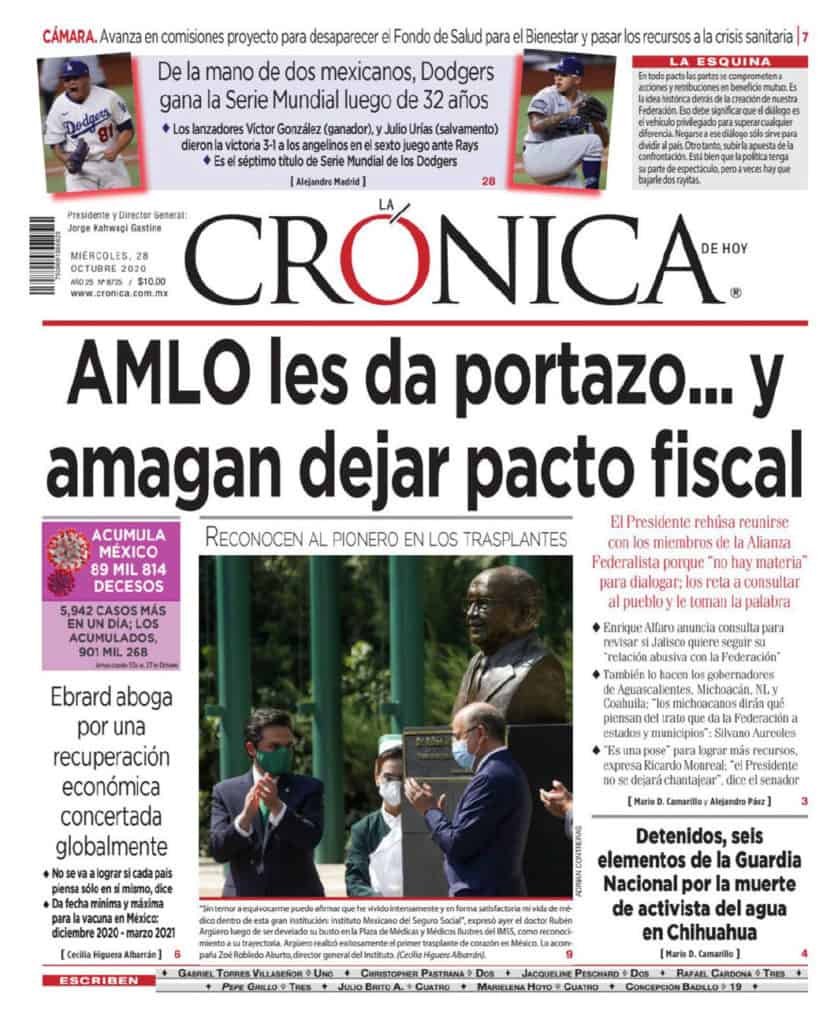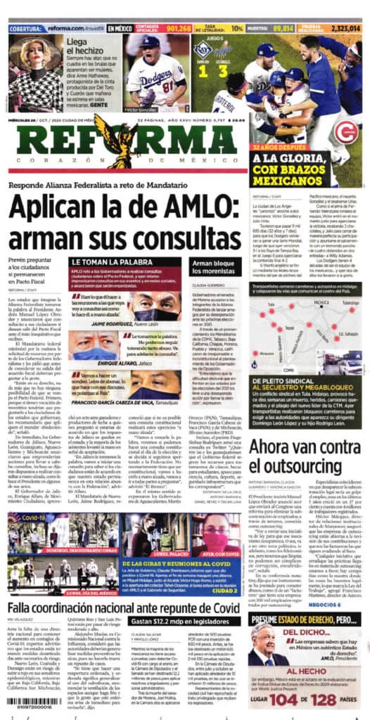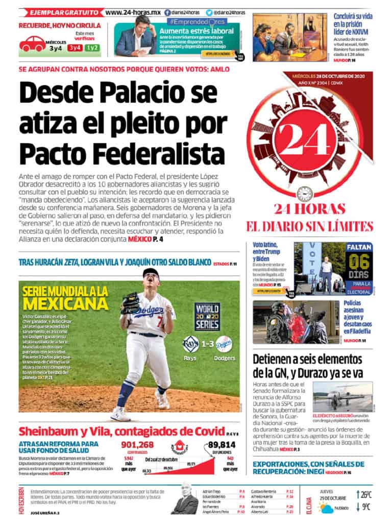 Portadas y Columnas políticas de hoy Primeras planas nacionales / 28 de octubre 2020 28 octubre, 2020 0 462 FacebookTwitterWhatsAppEmail