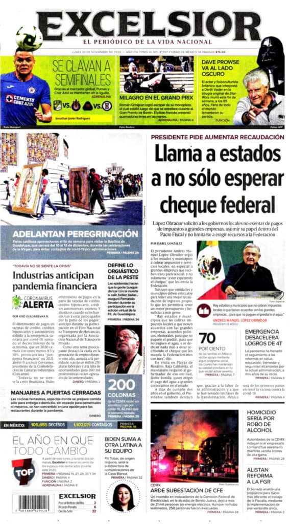 Portadas y Columnas políticas de hoy Primeras planas nacionales / 30 de noviembre 2020 30 noviembre, 2020 0 521 FacebookTwitterWhatsAppEmail