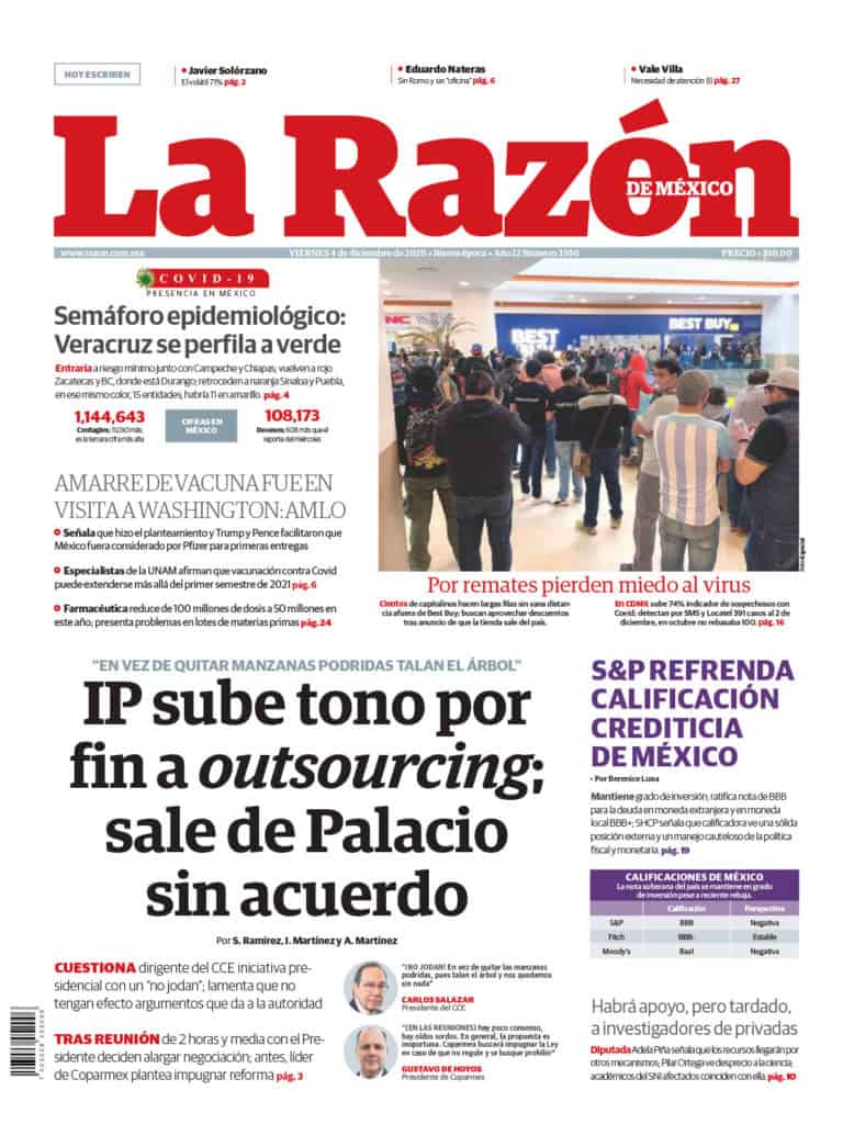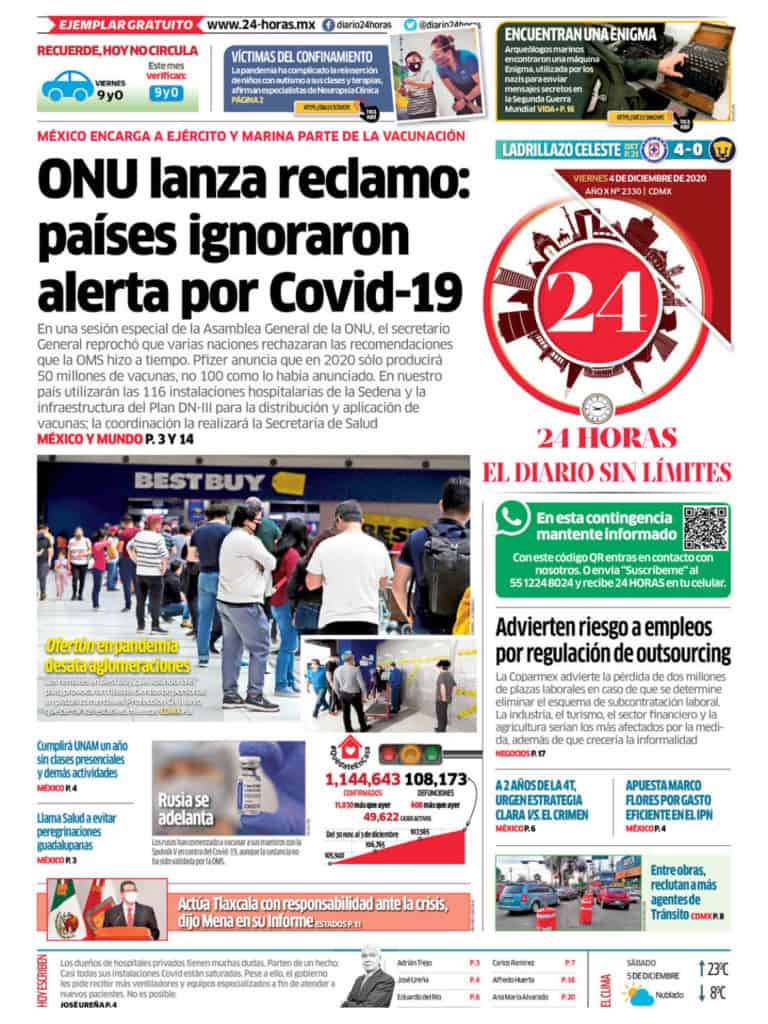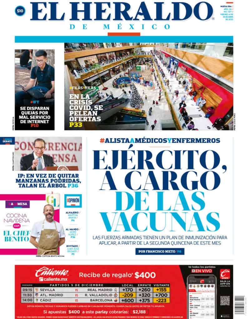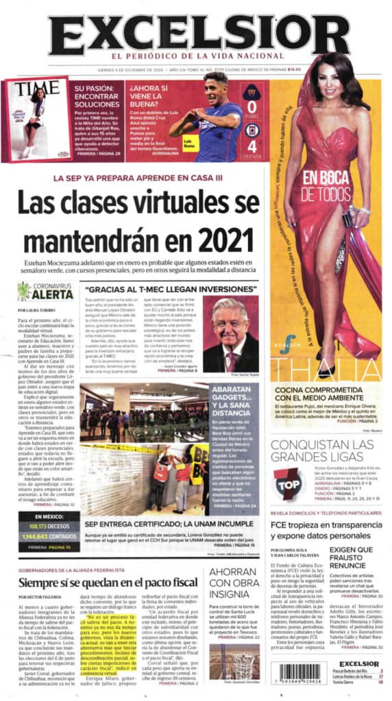 Portadas y Columnas políticas de hoy Primeras planas nacionales / 4 de diciembre 2020 4 diciembre, 2020 0 413 FacebookTwitterWhatsAppEmail