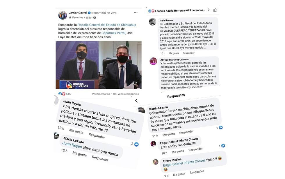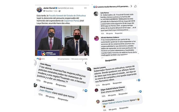 Eso y más, como otros crímenes impunes y unas autoridades estatales omisas, reclamó la gente en las mismas redes de Corral. La muestra, en la versión digital de La Columna.