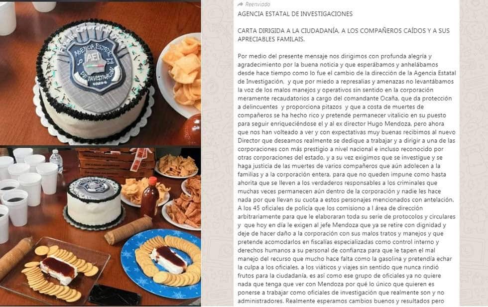Así reaccionaron varios grupos y unidades de la Agencia Estatal de Investigaciones al concretarse la salida de Hugo Mendoza Castellanos como titular de esa área dependiente de la Fiscalía General del Estado.